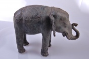 Gammel elefant figur i metal med talrige forskellige håndlavet udsmykninger.